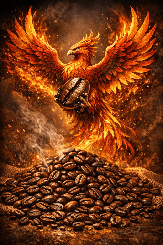 まるで不死鳥のようなコーヒー豆ですね!