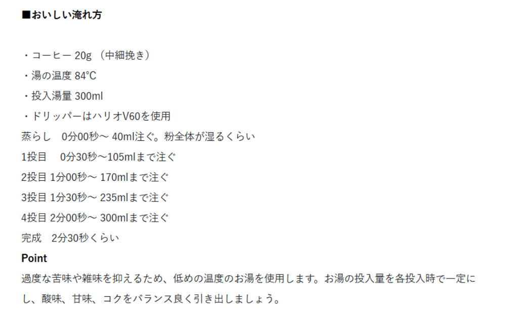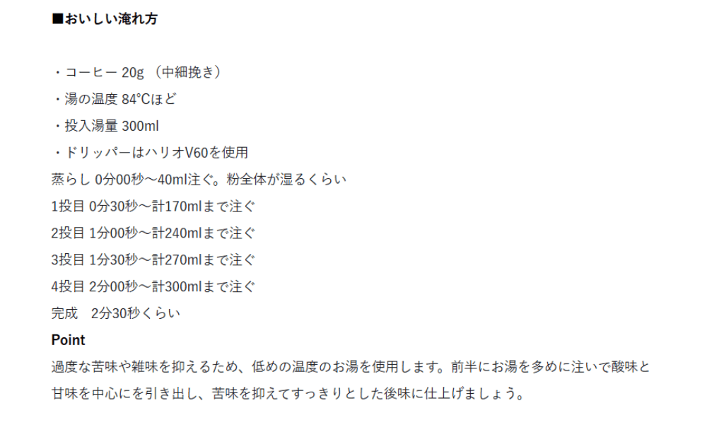 口当たりが優しく、苦みも酸味もネガティブなところがない、クリアな味わいです。後味もすっきりしていますね。いつまでも良い意味でコーヒーの味が舌に残りません。飲みやすく美味しいコーヒーです。