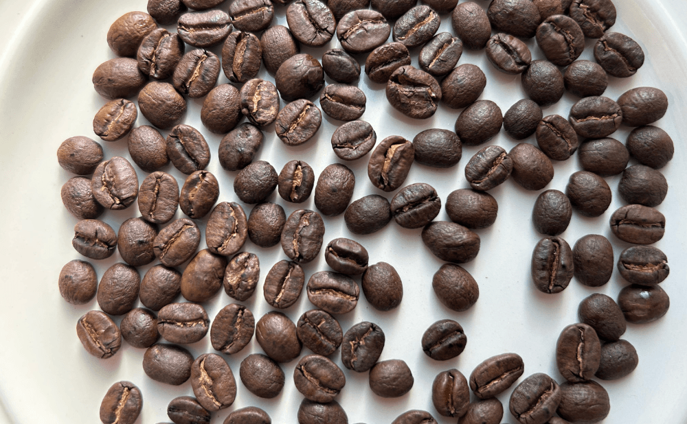 早速チンパンジーコーヒーを開封して、お皿に豆を広げます。もちろんチンパンジーの香りはしません。美味しそうなコーヒーの香りです。