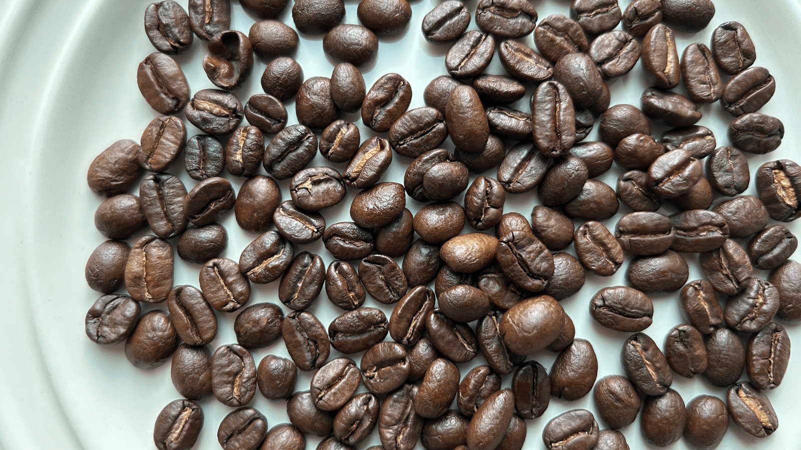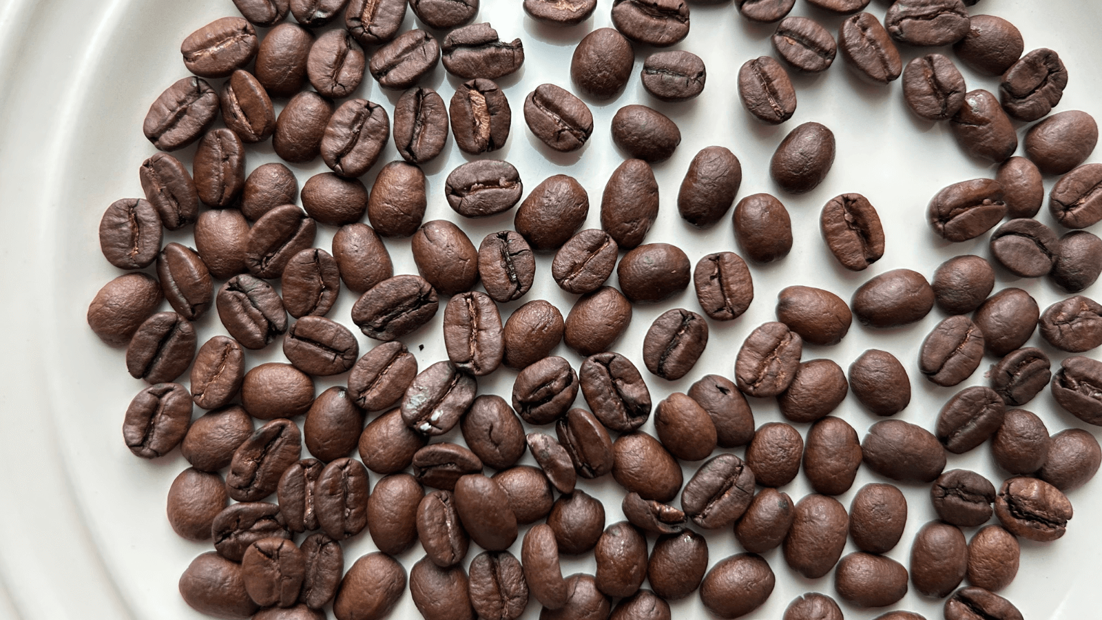 豆の状態です。シングルオリジンと思いますが、大小さまざまな豆の大きさがありますね。