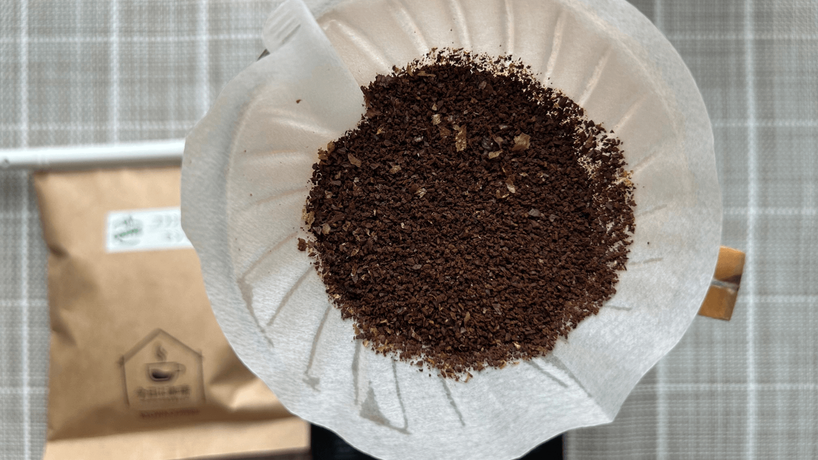 手動ミルを回す力が軽い。ペーパーにのせます。