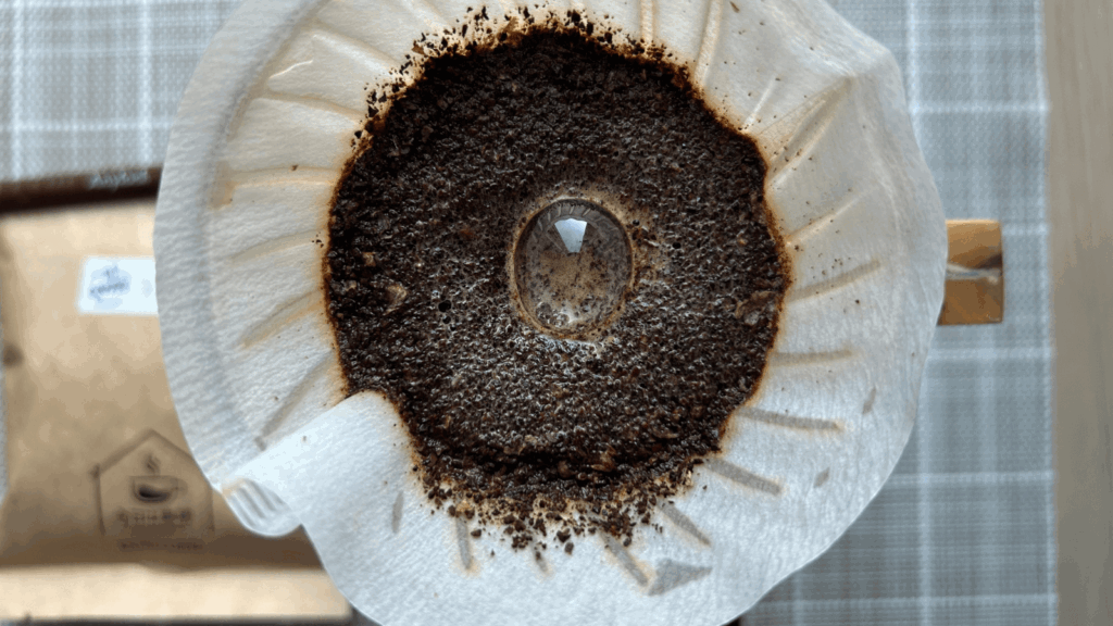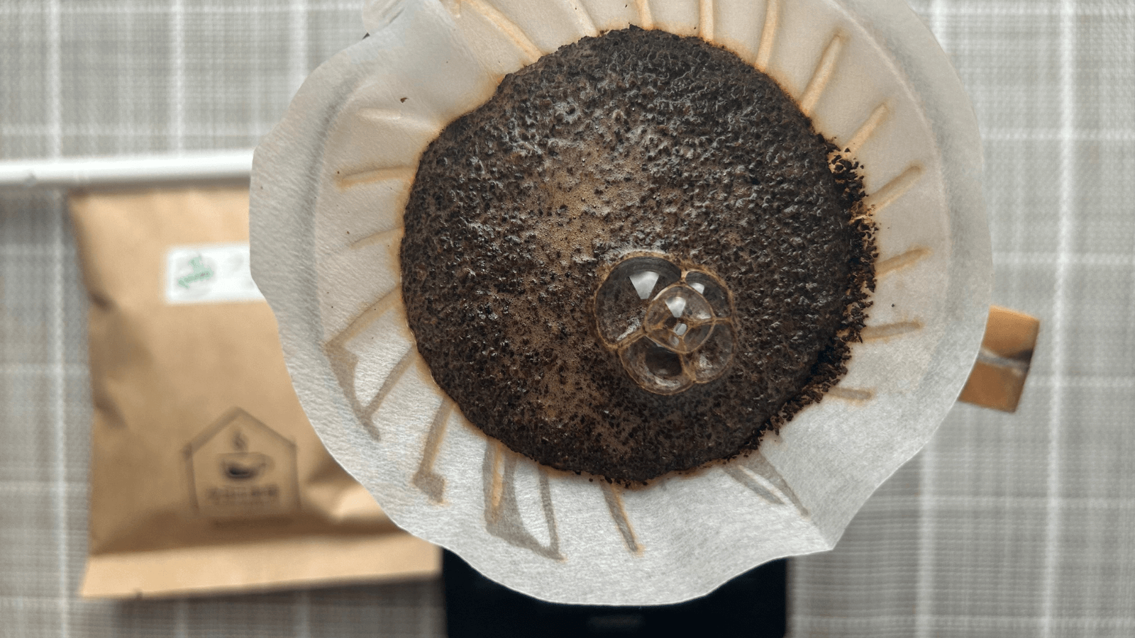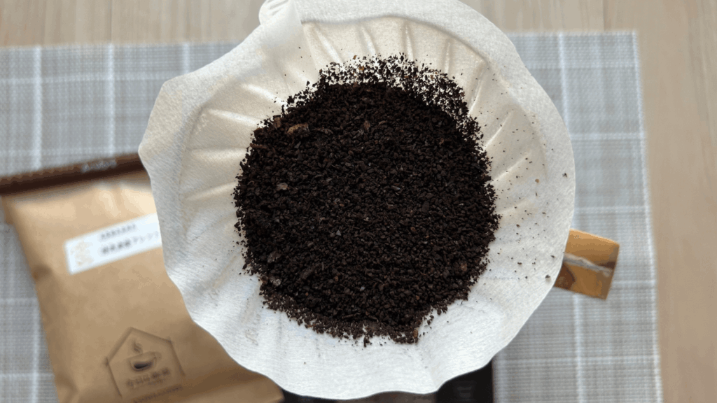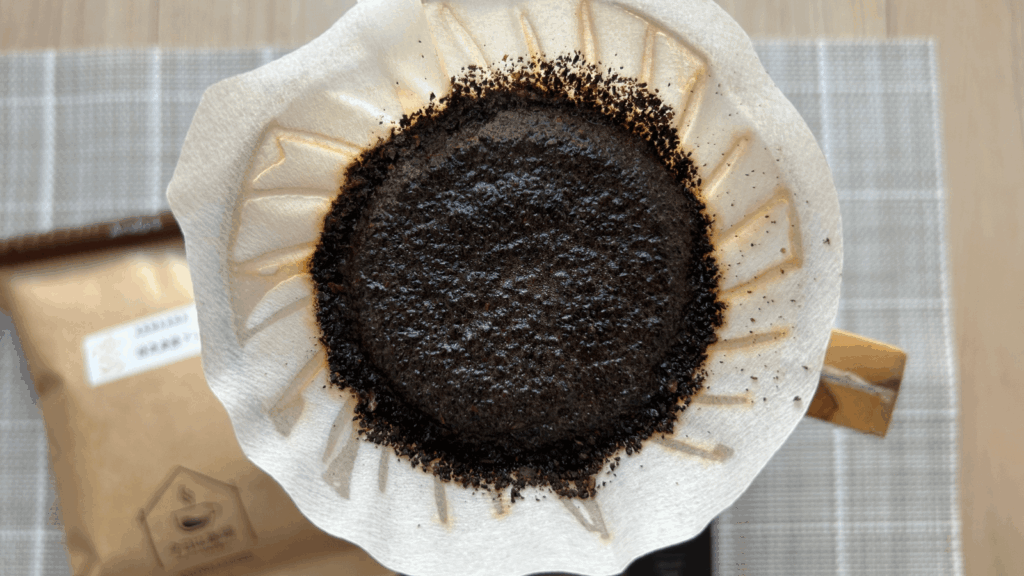 お湯の第一投目です。そこまで膨らまなかったですかね。焙煎してすぐに届けてくれるので鮮度は間違いないと思います。焙煎が深くないからですかね。