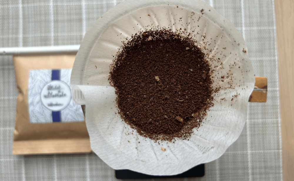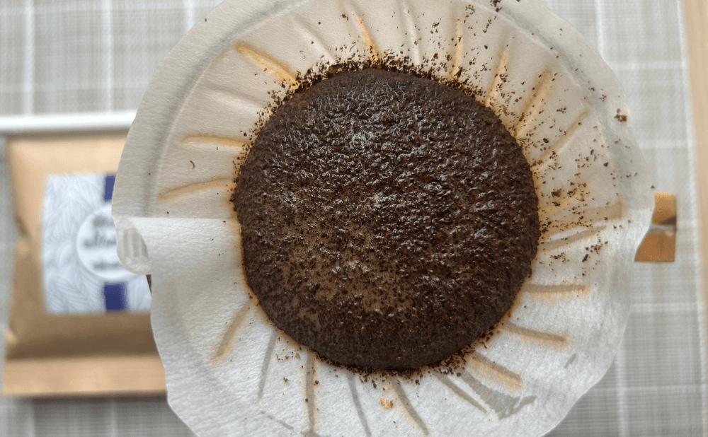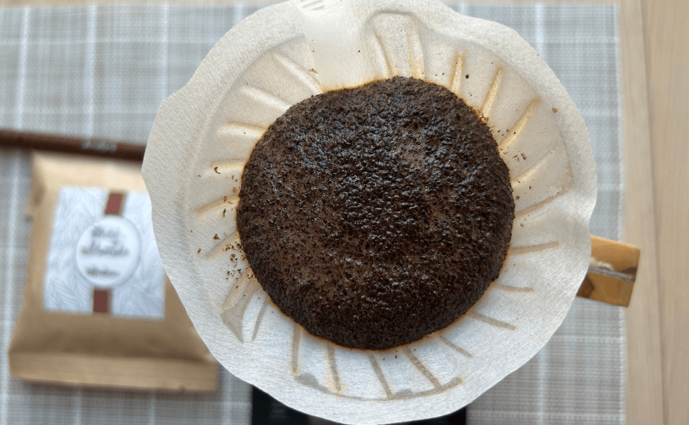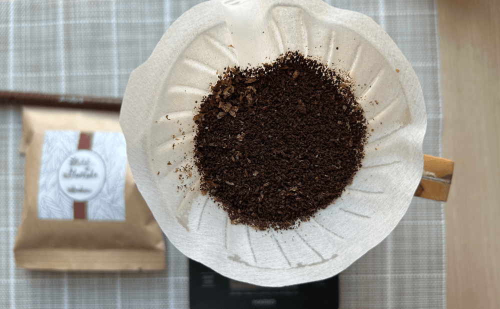 お湯の第一投目です。膨らみも良いですね!豆が新鮮です。