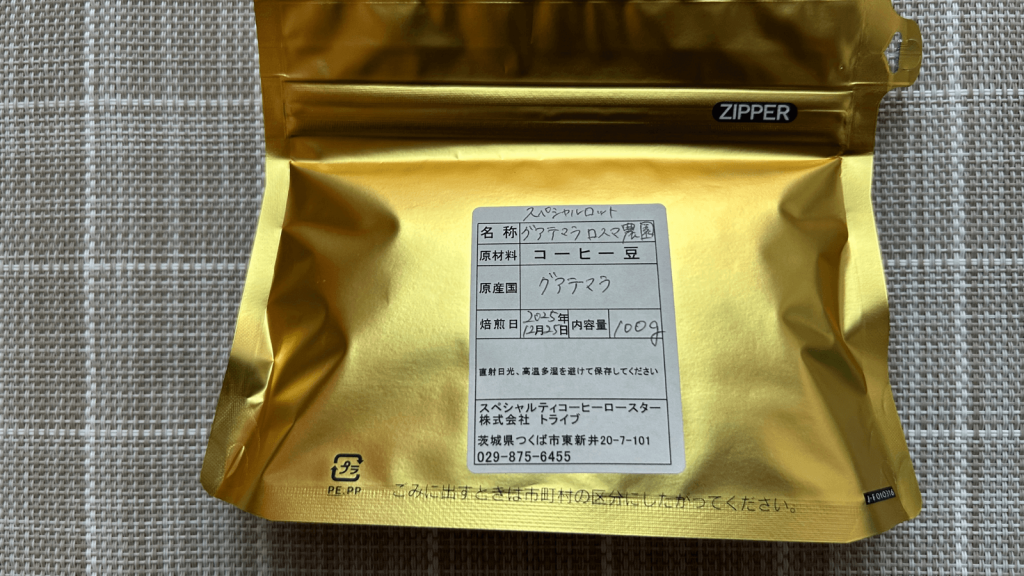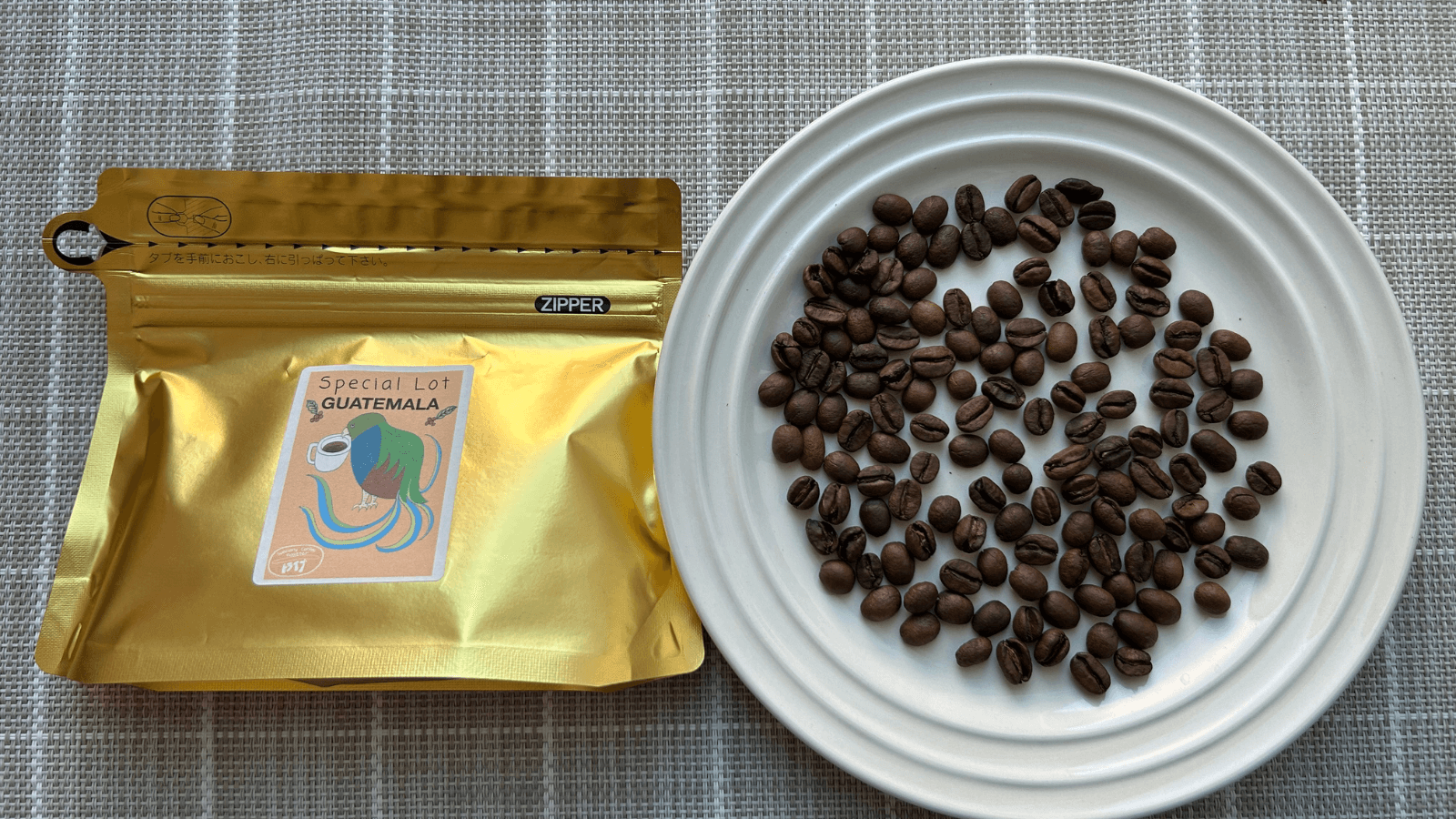 グアテマラ ロスマ農園のコーヒー豆です。浅煎りのようです。