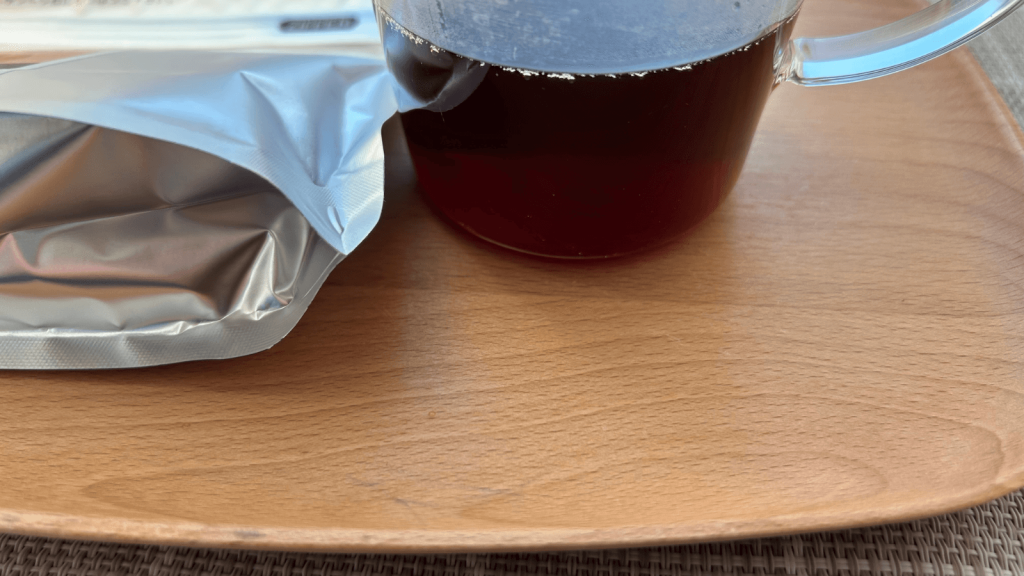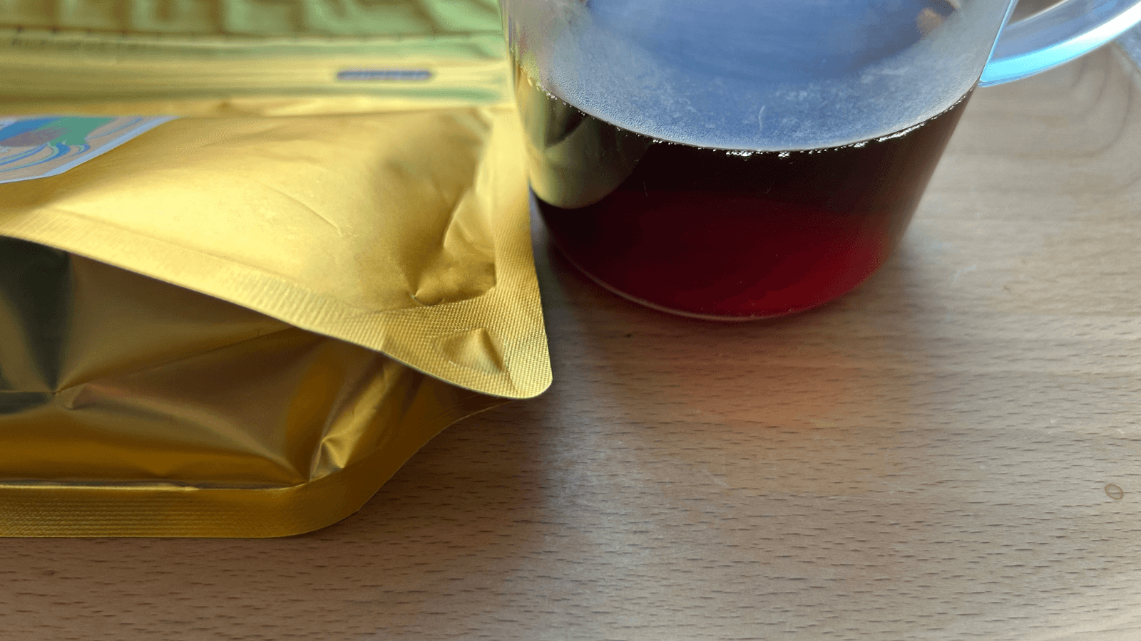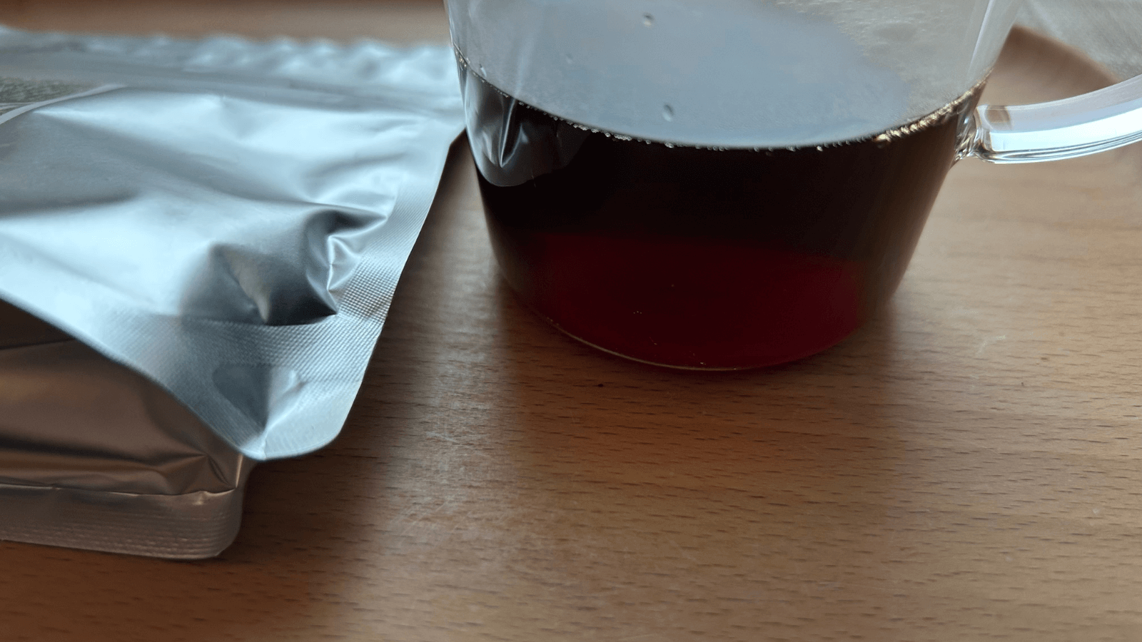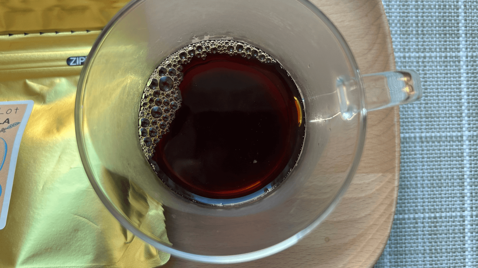 透き通った赤みでもなければ、向こう側が見えない黒さもない中煎りの感じの色味ですね。
