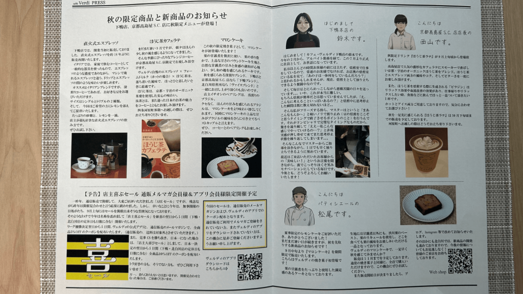 3種類のコーヒー豆と同封されていたのは情報冊子と「コーヒーを愛する方へ」とかかれた小さな冊子でした。カフェを営んでいると実際に訪れてみて店員さんと会話したり、どのコーヒー豆が好みかを話しながら購入できるのでいいですよね。